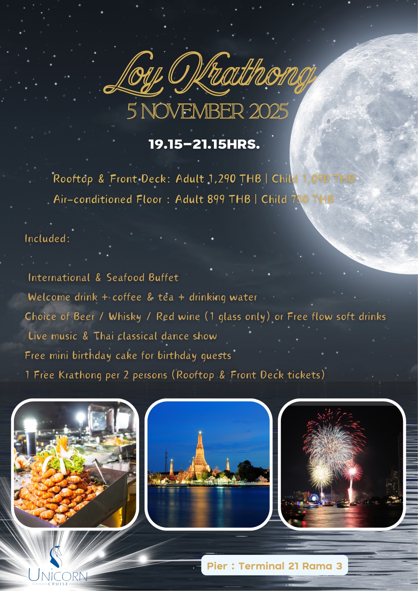 เรือ Unicorn Cruise (วันลอยกระทง Dinner)