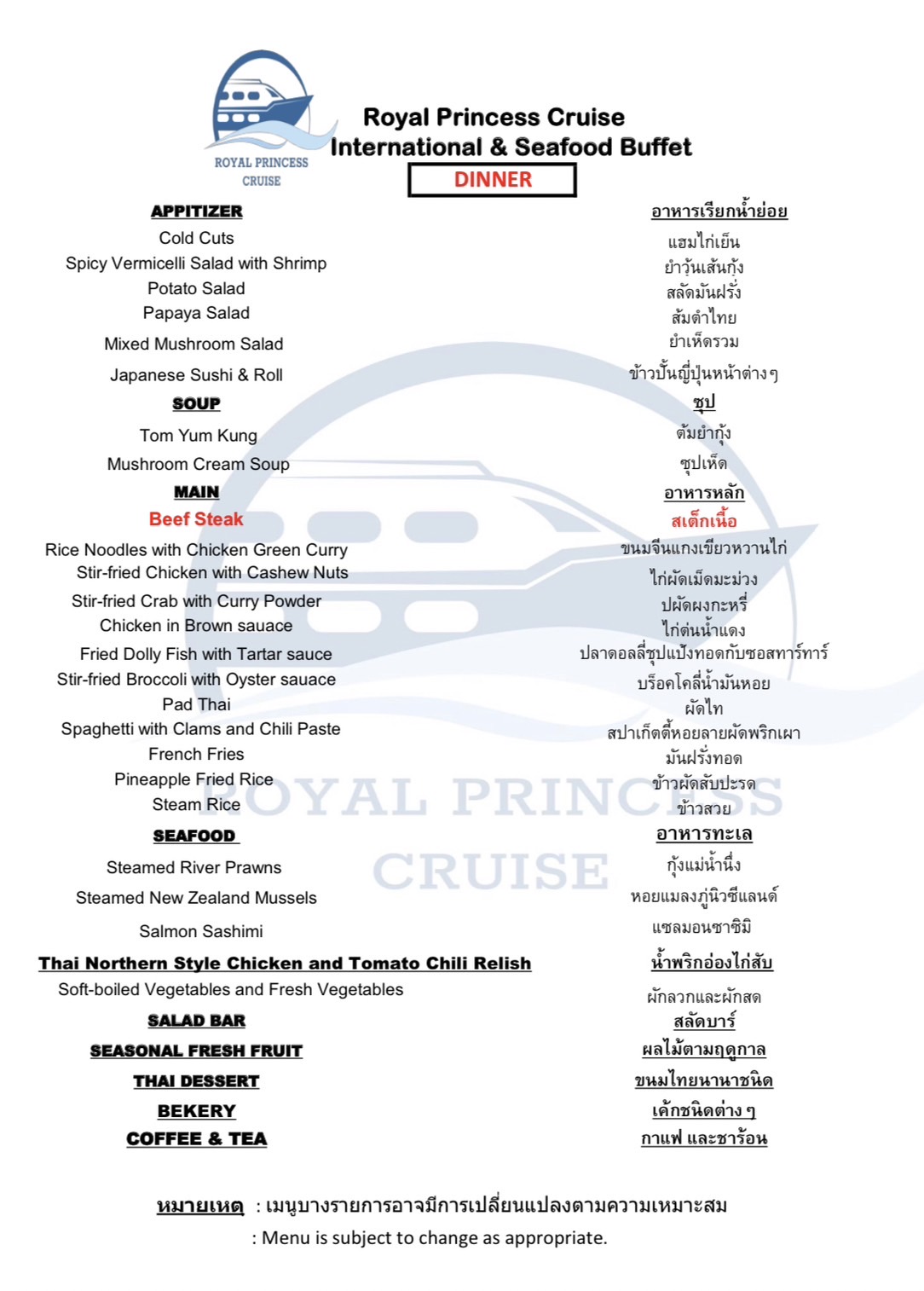 เรือรอยัลปริ๊นเซส ครูซ (วันลอยกระทง)