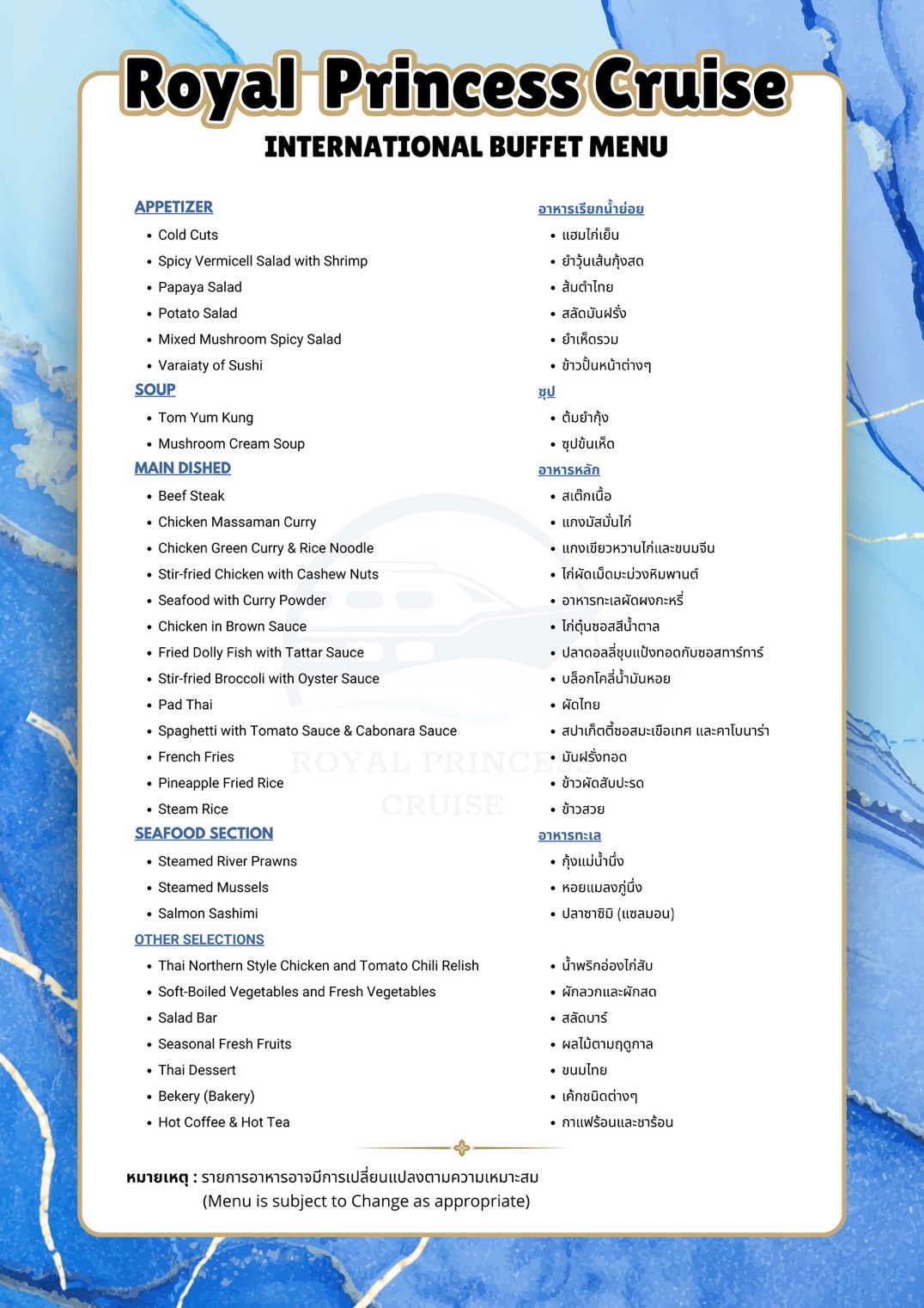 ✅ เมนูอาหาร : บุฟเฟ่ต์นานาชาติ + ซีฟู้ด