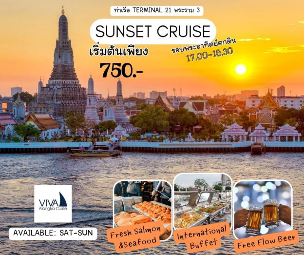 เรือไวท์ออร์คิด(รอบพระอาทิตย์ตก) เวลา:17.00-18.45 น.