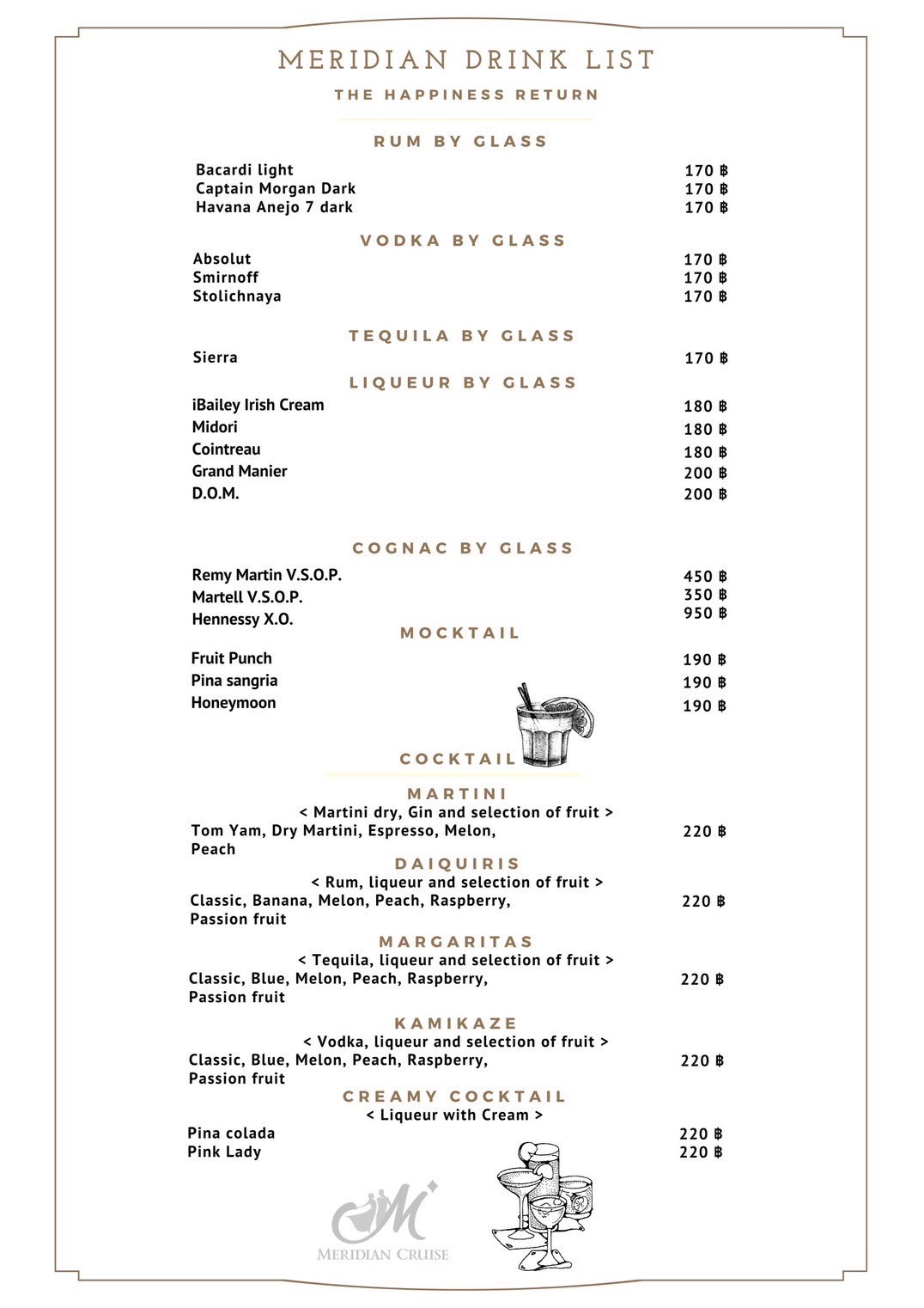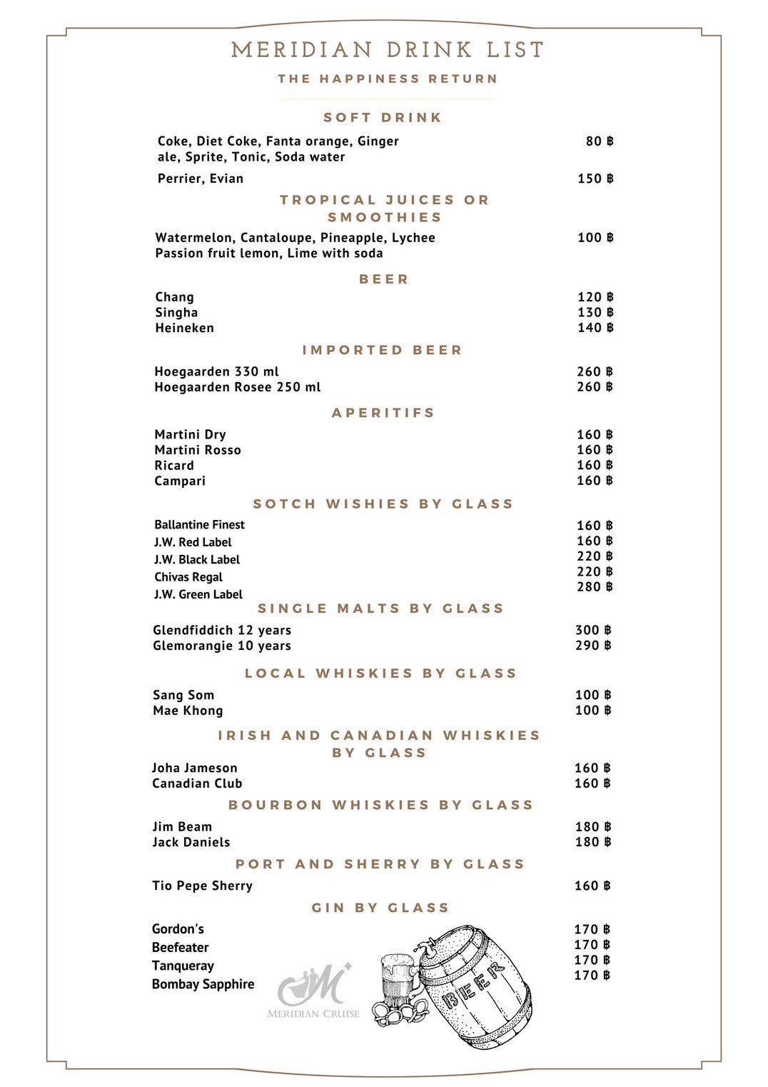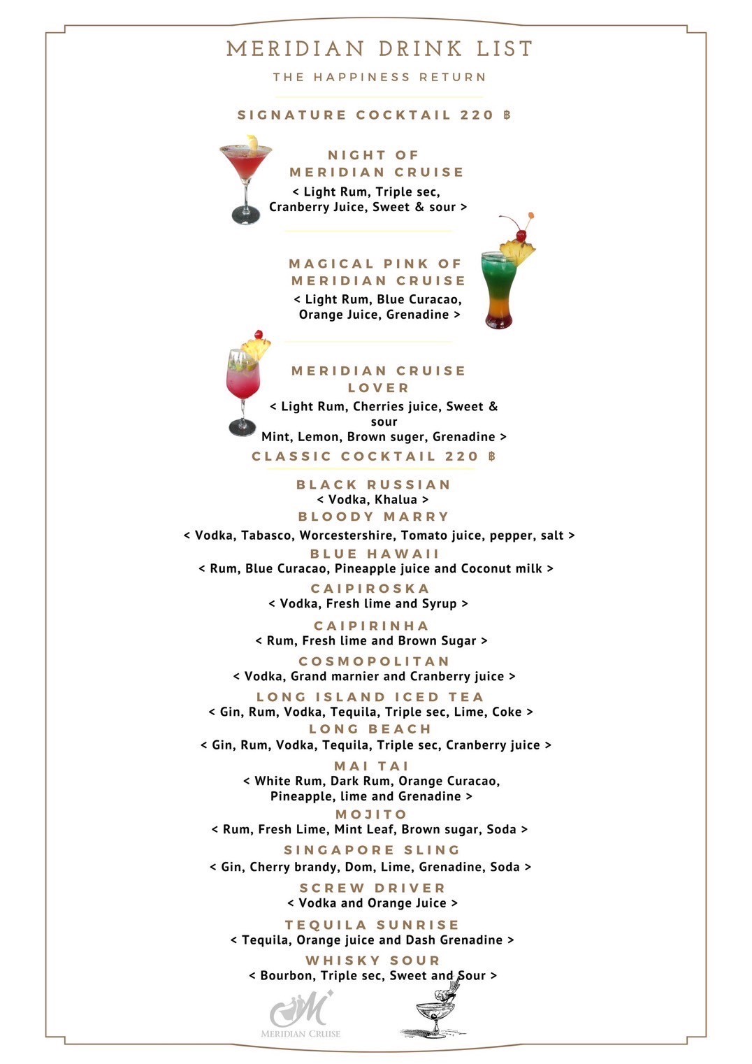 **หมายเหตุ : ราคาเครื่องดื่มอาจจะมีการเปลี่ยนแปลง สามารถสอบถามได้ที่หน้า บาร์