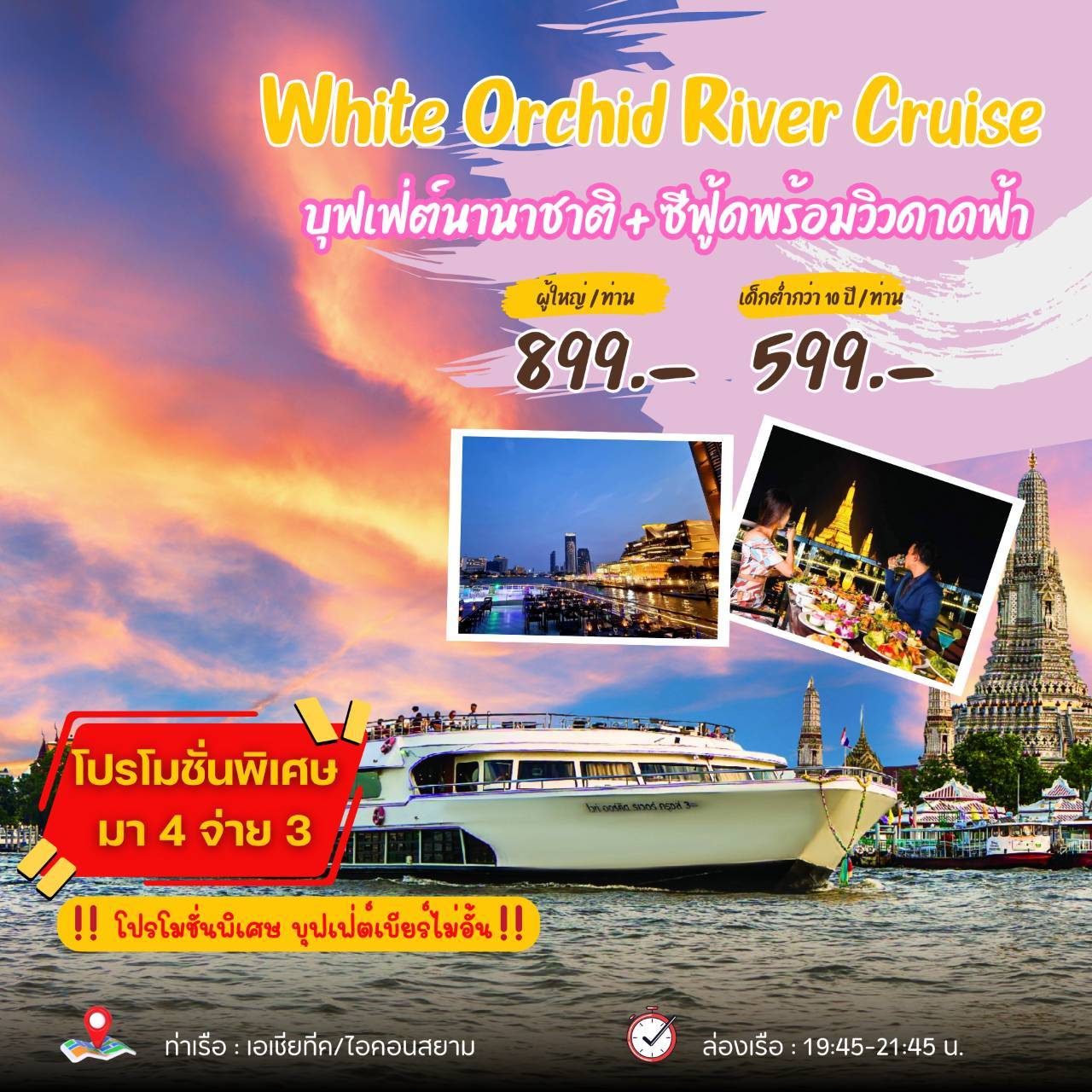 ⏱ ล่องเรือ : 19.45 – 21.45 น.