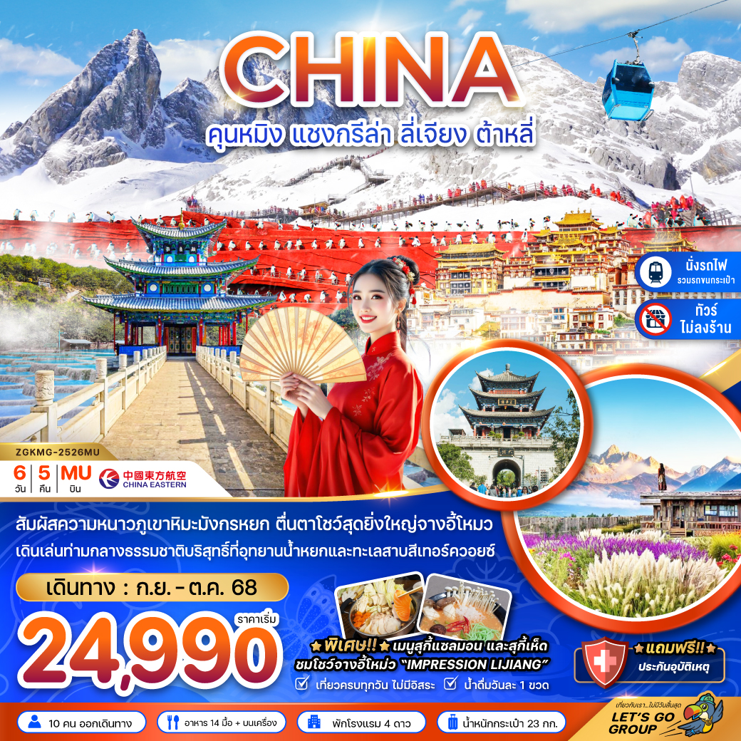 ZGKMG-2526MU: คุนหมิง แชงกรีล่า ลี่เจียง ต้าหลี่ ต.ค.2568 เริ่มต้น 24,990.00 บาท